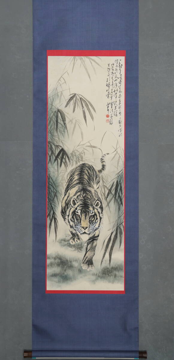 - 中国書画 掛け軸 中国・近現代 趙少昂書「叢林猛虎図 立軸」紙本立軸 書道巻物 真筆逸品 肉筆保証 唐物 古画 LOT-N6690