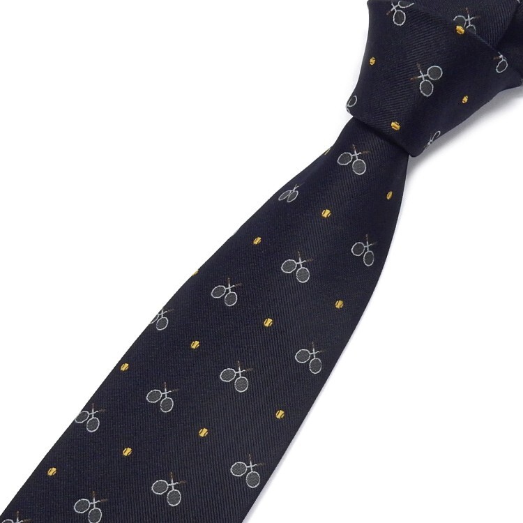 - スポーツ応援タイ テニスラケット&ボール テニスネクタイ 濃紺 日本製ネクタイ 甲州織 洗濯機OK メール便OK NSP56