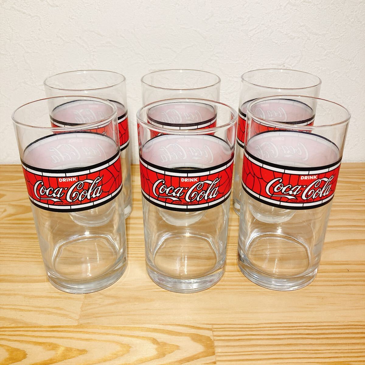 - 【未使用品】コカコーラ ガラスコップ 6個入り タンブラー 希少 非売品 デッドストック 昭和レトロ ティファニー模様 当時物★A2503-0002