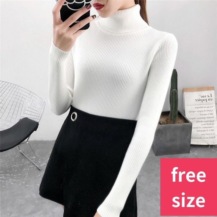 - レディース 暖かい タートルネック 長袖 ニット プルオーバー 冬春 ホワイト