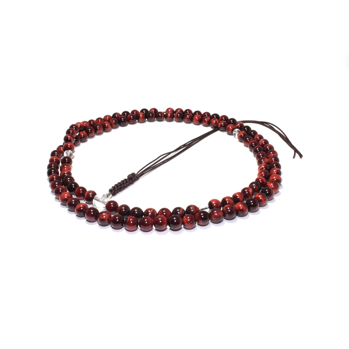 - お念珠 赤目石 水晶仕立 四本組紐 桐箱入り 念珠 数珠 レッドタイガーアイ 【ss1-2-59】
