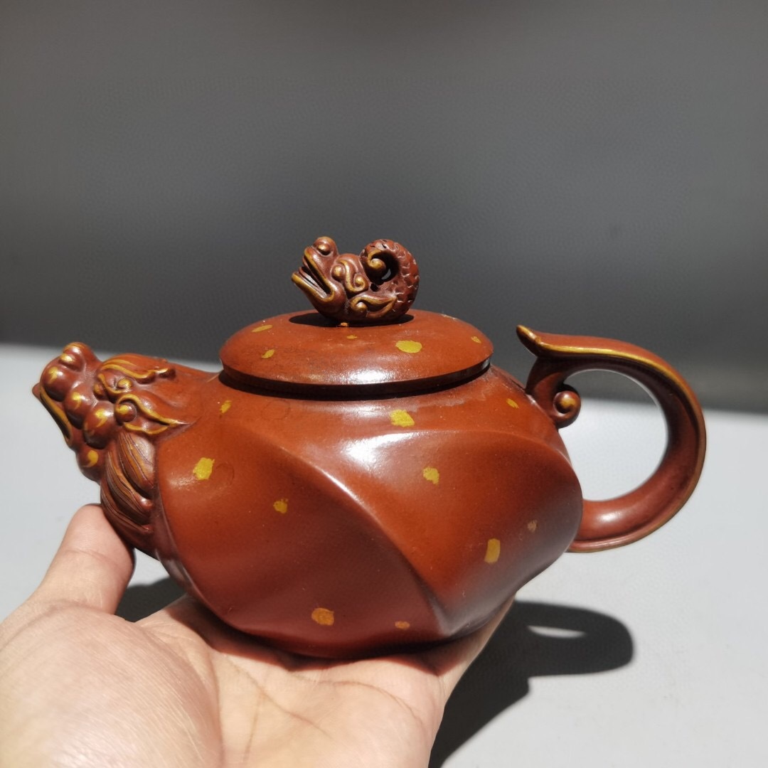 - 『館蔵珍品 紫砂壺 描金龍壺 周国君款 紅泥 紫砂壺』置物 賞物 貴重物品 収蔵品 中国古美術