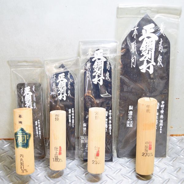 > 【新潟発】未使用 正鋼別打 鏝 4個セット 中塗鏝 仕上鏝 内丸面引 本職用 最高級 油焼き 左官 道具 ハンドツール 三条 問屋 買取 工具 中古
