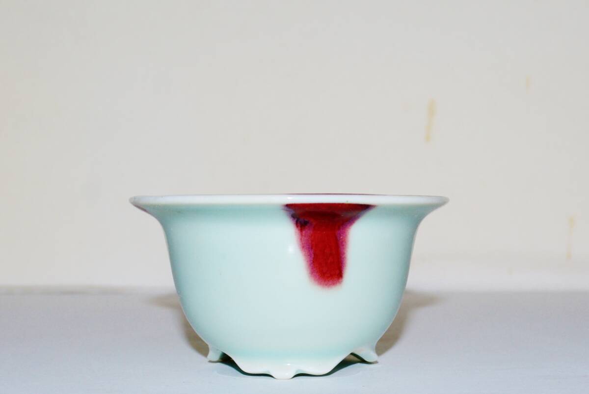 - 特注品・希少・伊藤月香の弟さん 「伊藤屯洋」 青磁釉に辰砂釉 外縁丸形の鉢