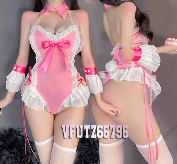 - ピンク XLサイズ エロ可愛いしっぽ★制服誘惑 超セクシーハイレグ レオタード バニーガール メイド コスプレ コスチューム