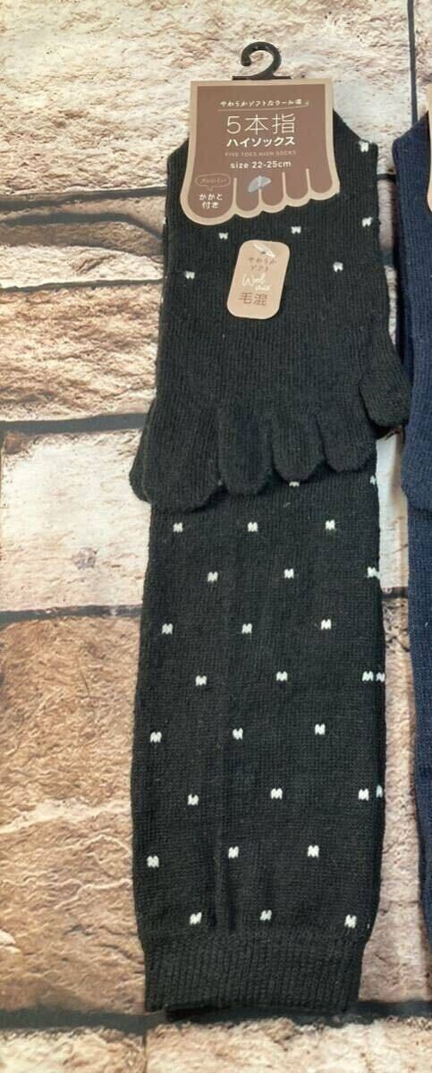 - 送料無料!『2足組』やわらかソフトなウール混!ズレにくいカカト付きレディース5本指ハイソックス