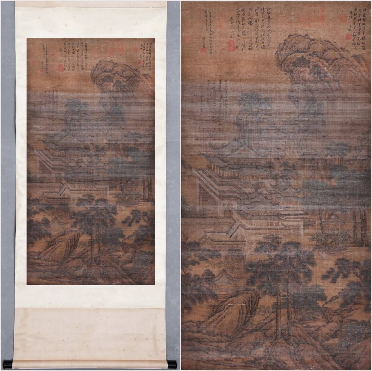 - 古美術 掛け軸 中国・宋時代 「郭熙書」 絹本 【秋郊帰隠図】 立軸 書道 巻き物 肉筆保証 唐物 古画 画心130x66cm LT-2503203