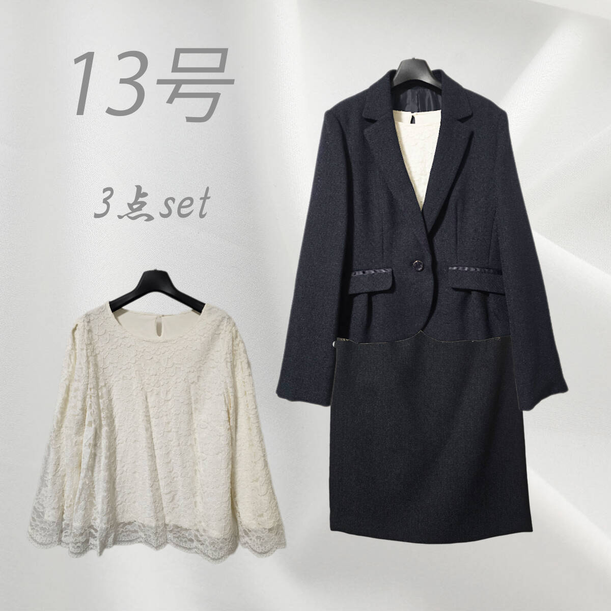 - ●新品/3点/スーツ/ジャケット/ブラウス/スカート/13号/ネイビー/オフ白/レース/入学式/卒業式/レディース●&1432