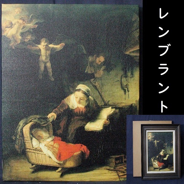 > レンブラント 「天使のいる聖家族」 6号 キャンバスに美術複製画(工芸画) 豪華黒檀調額縁 世界の名画 D790