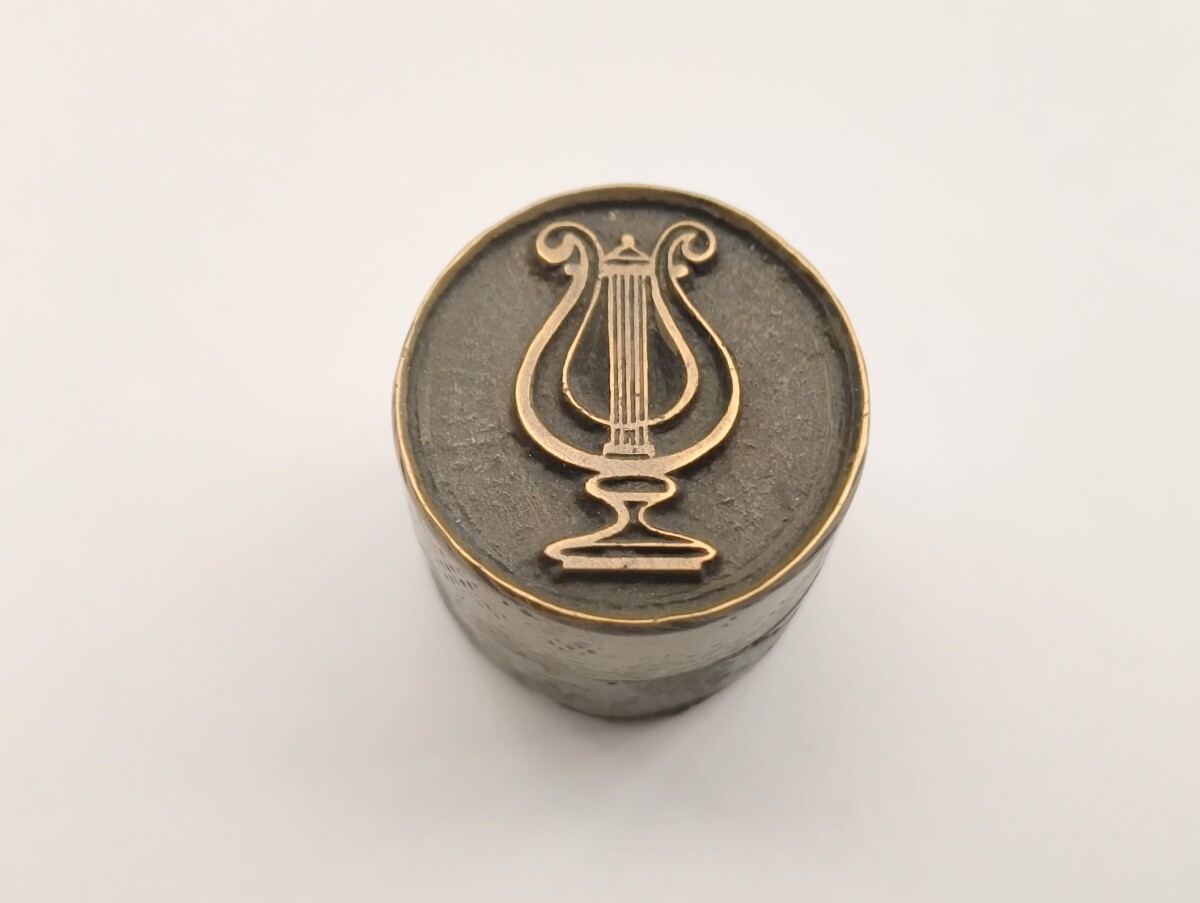 - とにかく古い 縦琴 楽器 ハープ アンティーク スタンプ ヴィンテージ ハンコ イラスト 素材 ギリシャ ミュージック 古物 銅製