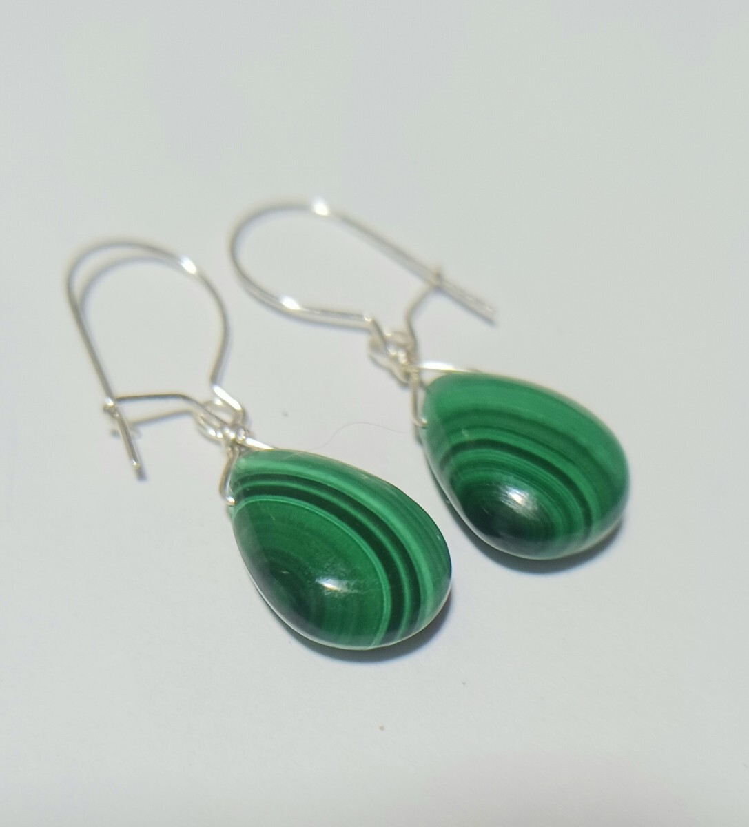 - 天眼マラカイ卜のキドニーピアス(着せ替え可能ピアス)天眼模様の孔雀石 シルバー925フック シルバーフィルド(SF)ワイヤー Silver Filled