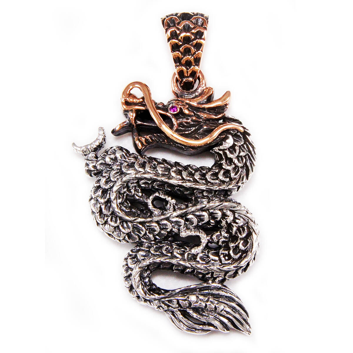- ドラゴン 竜 ルビージルコニア 銅 925シルバー ペンダント 925刻印あり SA-055L