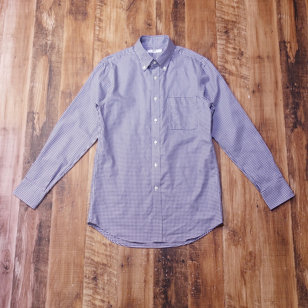 > ユニクロ UNIQLO 長袖ファインクロスチェックシャツ メンズ Sサイズ 古着 ネイビー ON14