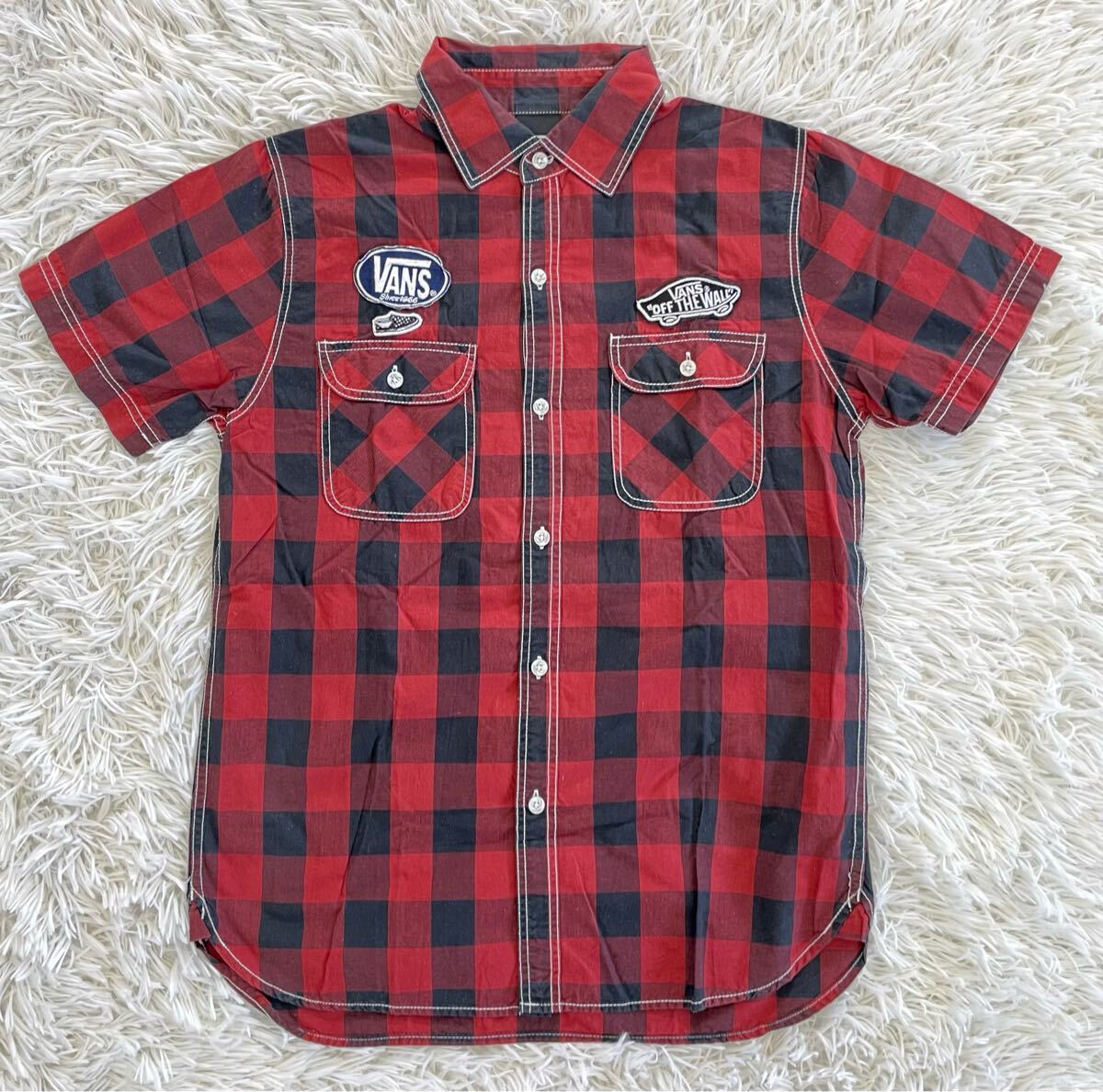 > 美品 VANS ヴァンズ バンズ チェック 半袖 ボタンダウンシャツ ワッペンシャツ メンズ Mサイズ ストリート スケボー アメカジ