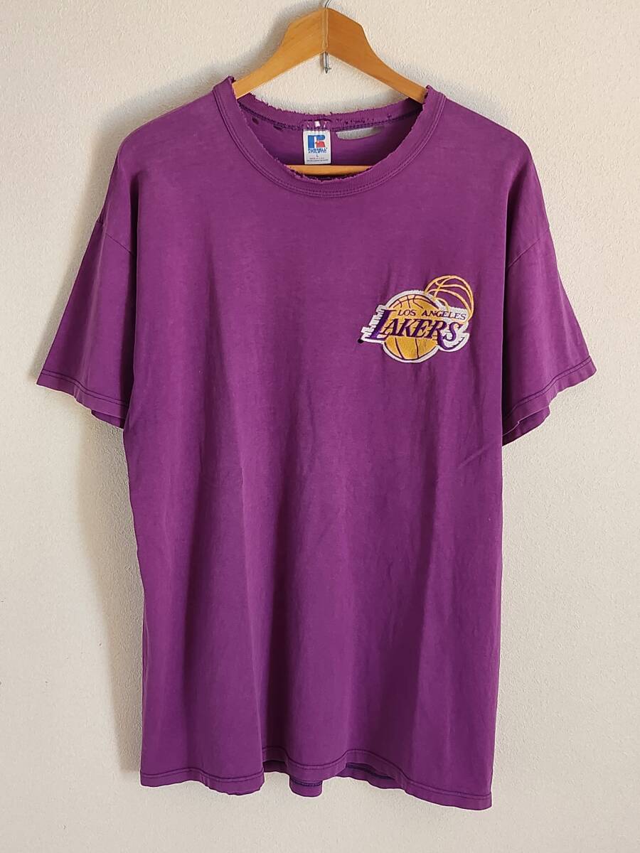 - 90sラッセルUSA製LAレイカーズTシャツオールドビンテージ古着ボロフェードNBA八村レブロンドンチッチアンソニーコービーシャキールマジック