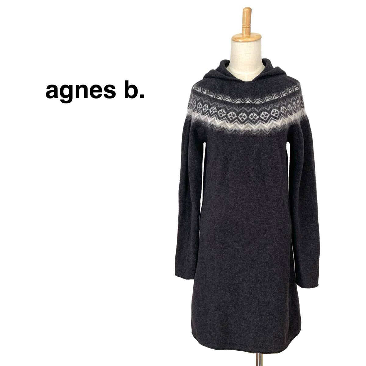 - ☆良品 agnes b. アニエスベー フード付 フェアアイル ニット ワンピース イタリア製 古着 ヴィンテージ vintage セーター