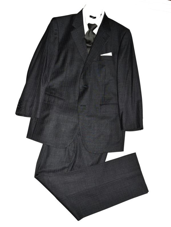- ★Loro Piana TASMANIAN★ロロピアーナ★ダーバン★グレイブルーストライプ★高級感ある艶と柔らかな肌触り着心地良い2釦スーツBB4