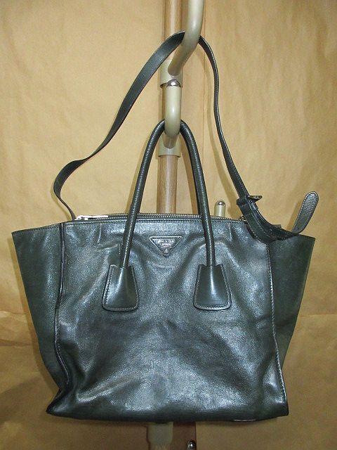 > プラダ PRADA 三角 ロゴ プレート レザー 2way ショルダー バッグ ダークグリーン 本物