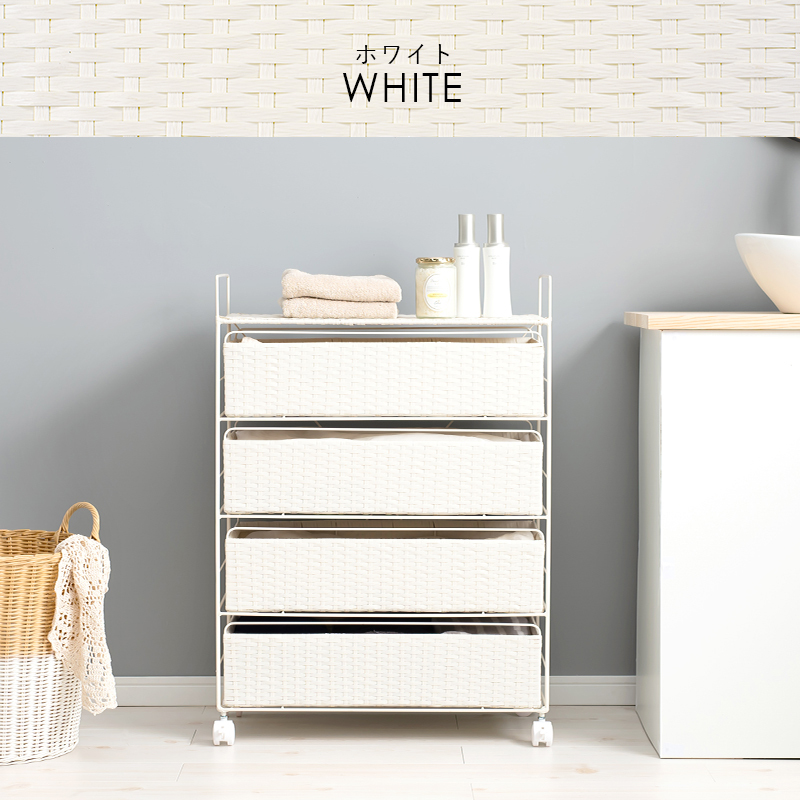 - ランドリー ホワイト色 幅60 ランドリー収納 チェスト キャスター付き