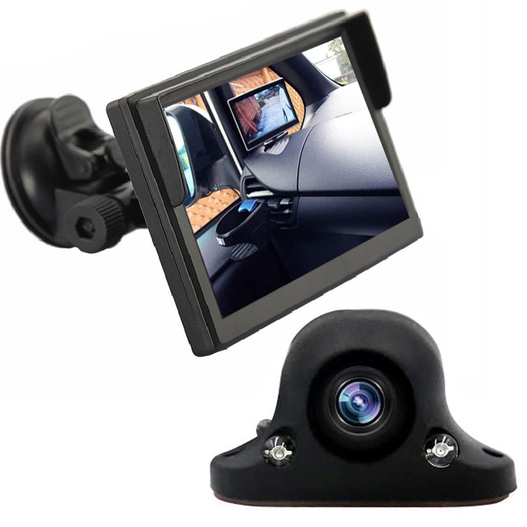 - バックカメラセット 5インチオンダッシュモニター 粘着式カメラ 配線簡単 角度調節 暗視対応 12V車専用 GWCMN50BK1100