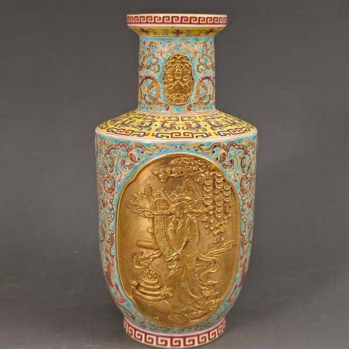 - 【伝世蔵品】中国古美術 古玩 唐物旧蔵 大清雍正年琺瑯浮彫 招財進寶長寿瓶 極細工浮彫 置物 擺件 古賞物 風水物 鎮宅 骨董中国骨董 大珍品