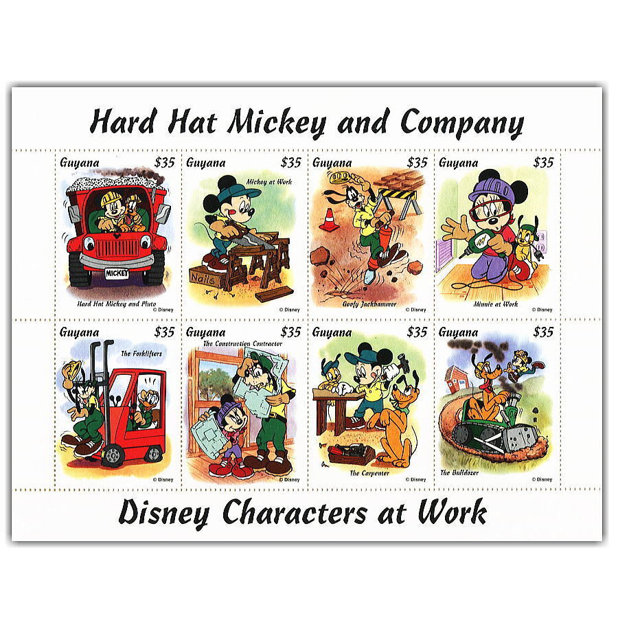 - ディズニー ミッキー ミニー ドナルド グーフィー プルート 切手8枚1シート(ヘルメット) Guyana 1995年