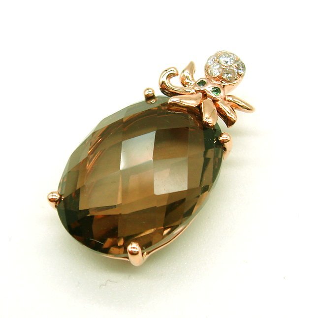 - PE548:K18PG スモーキークオーツ ダイヤ グリーンガーネット ペンダント