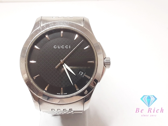 > グッチ GUCCI Gタイムレス メンズ 腕時計 デイト 126.4 黒 ブラック シルバー SS ブレス アナログ クォーツ 【中古】【送料無料】 bt3373