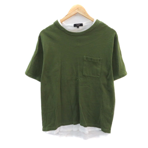 > ビームスハート BEAMS HEART Tシャツ カットソー 半袖 レイヤード風 M カーキ /YK21 メンズ