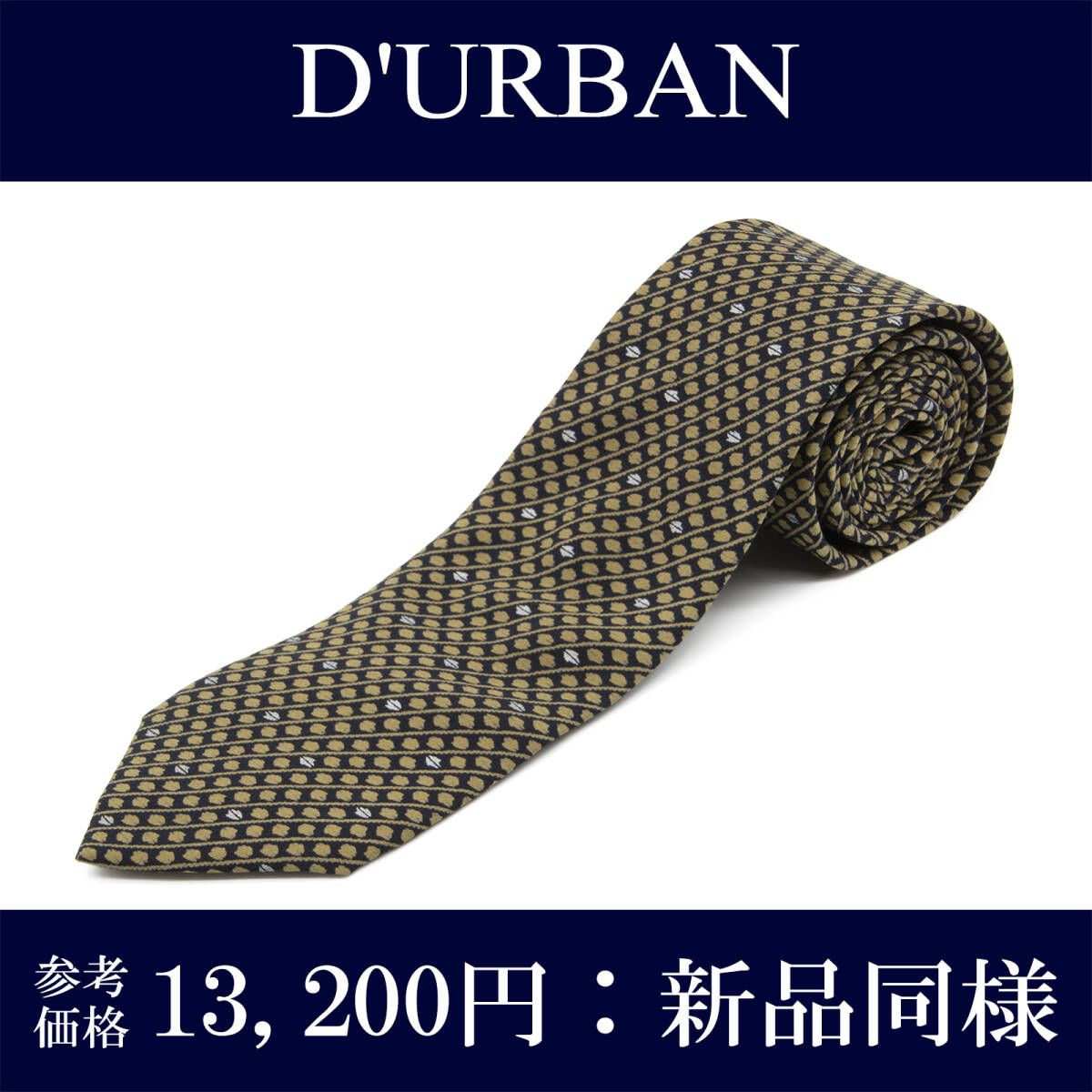 - 送料無料 ダーバン ネクタイ 新品同様 シルク オーカー 黒 ブラック ビジネス 珍しい パターンストライプ 総柄 ブランド 日本製 綺麗 N010