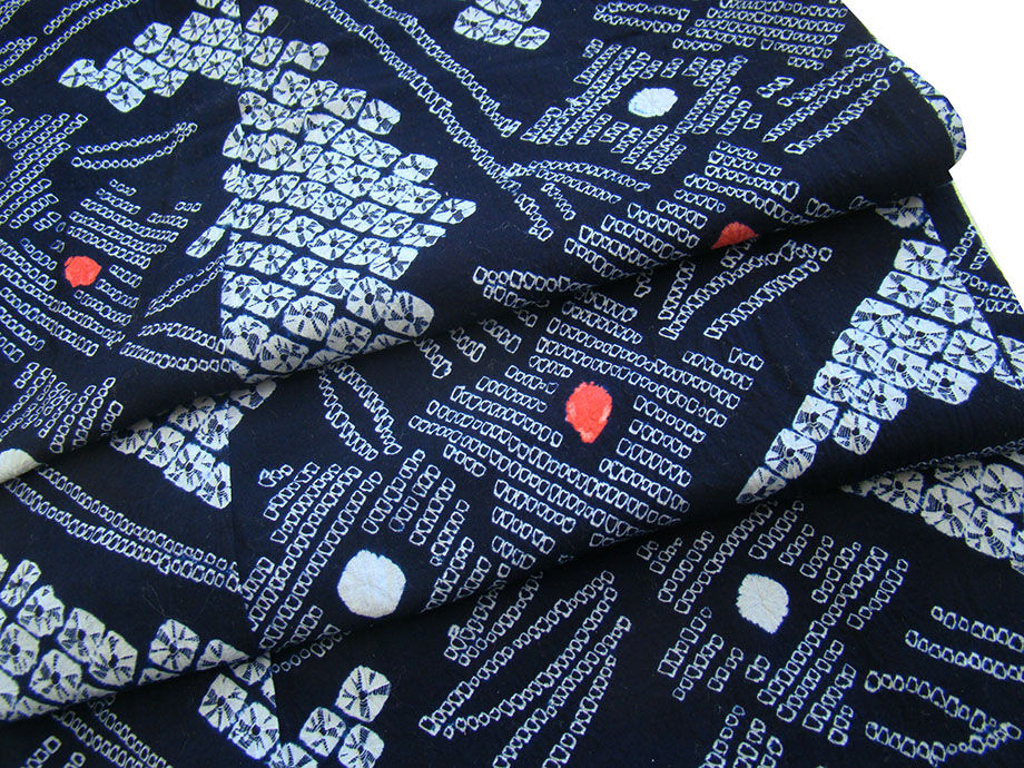 - 夏物!美品 裄64.4cm お洒落 鳴海総絞り 浴衣・ 四寸帯 セット 150cm~155cm Ys337