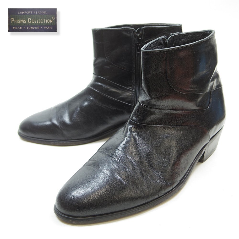> 10-1/2表記 28.5cm相当 PRISMS COLLECTION プリズムコレクション サイドジップブーツ 革靴 ブラック 黒 /P2722