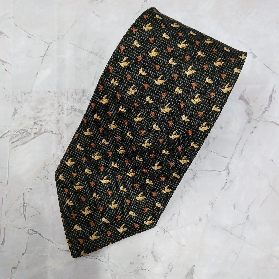 - ジルアンドモートン ネクタイ 黒 橙 黄色 灰色 小紋柄 シルク【n902】