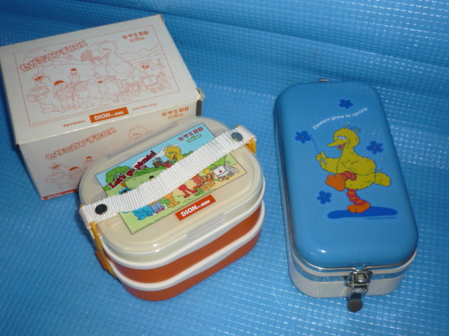> b★未使用・非売品★DION by KDDI セサミストリートランチBOXと2004年ミスド お弁当箱 ビッグバード