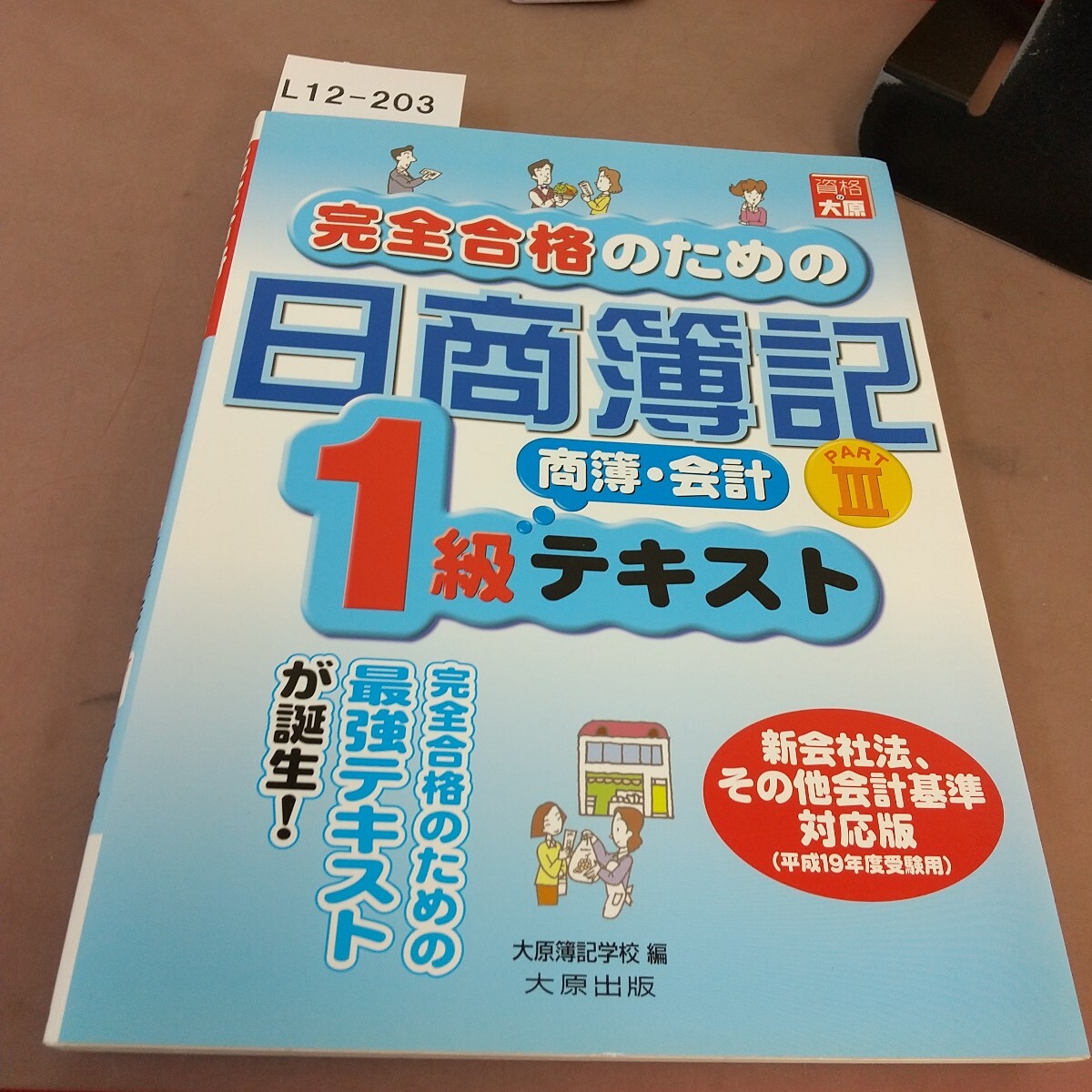 - L12-203 完全合格のための 日商簿記1級 商簿・会計 PARTⅢ テキスト 大原簿記学校