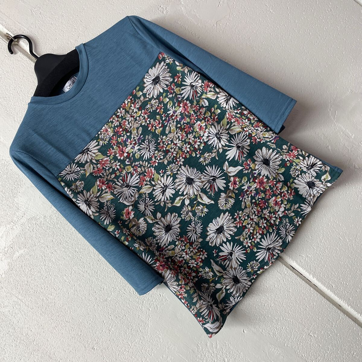 - 切り替えプリント七分袖カットソー グリーン