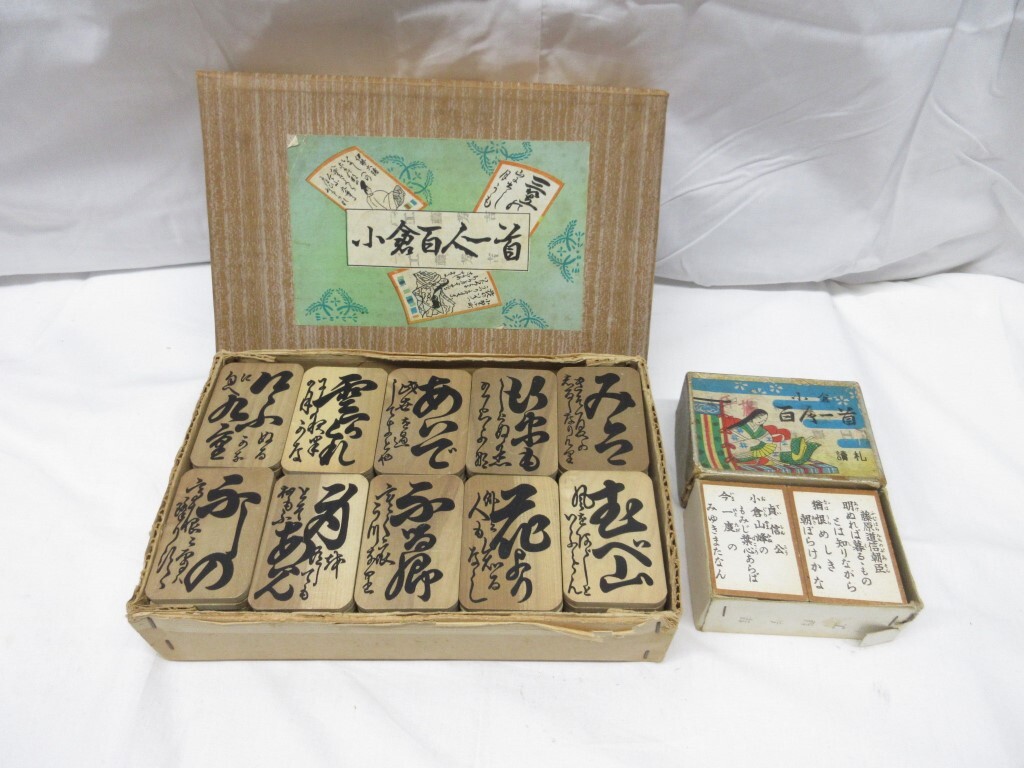 - 03Y115 【 中古品 】 小倉百人一首 かるた [ 木札100枚・読み札100枚 ] 現状渡し 売り切り
