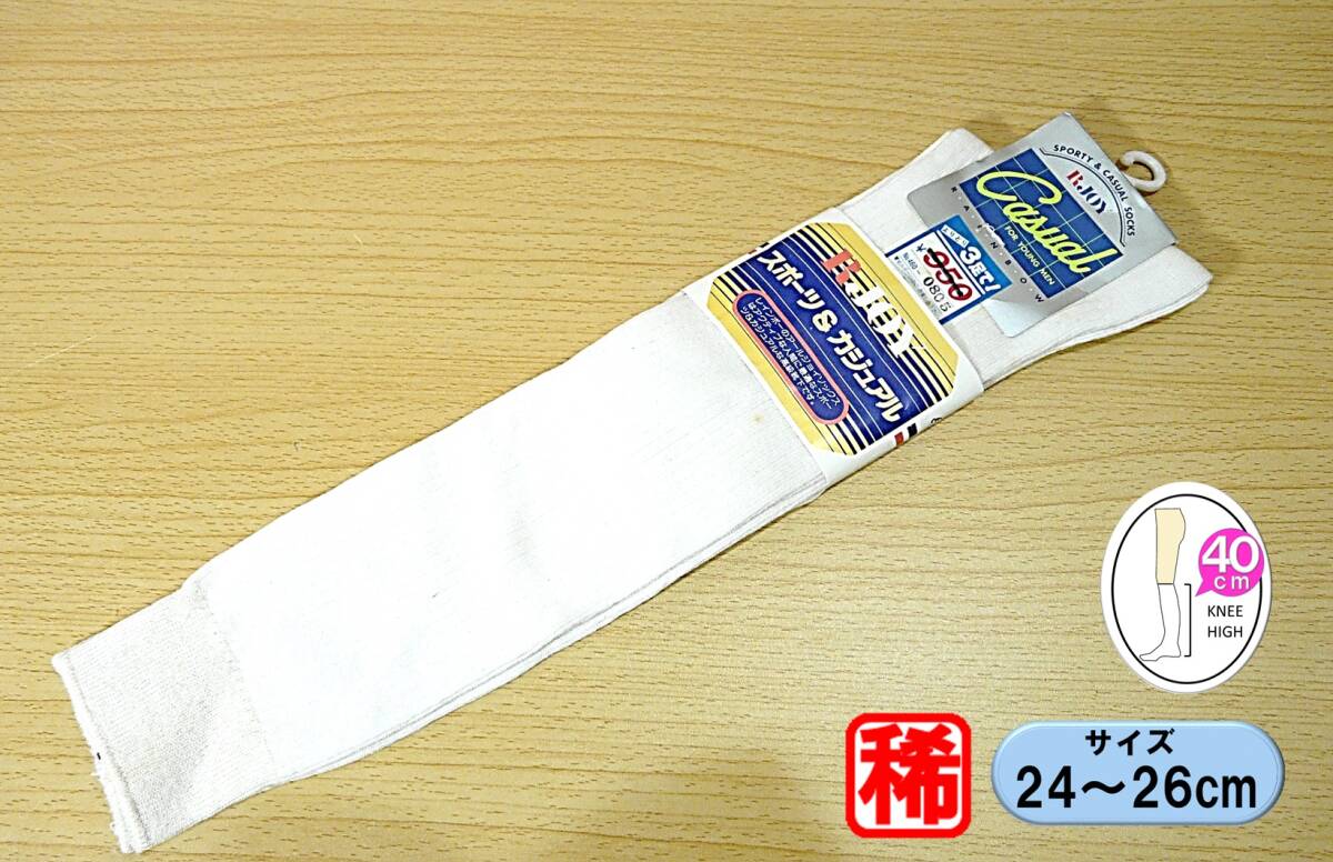 > 【レッグウェア★未使用品】東京靴下◆3×1リブ◆白 ハイソックス◆スクールソックス◆24-26cm◆40cm丈◆稀少◆