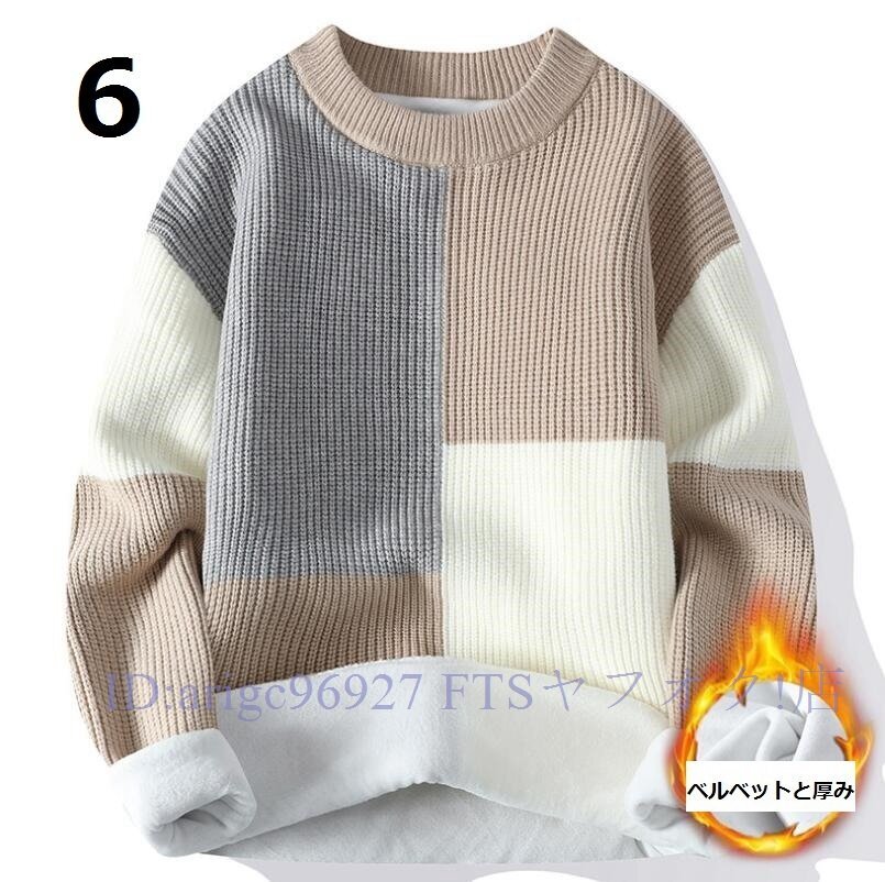 - ☆新品ニットセーター カシミヤウール混 メンズ プルオーバー 編み トップス ラウンドネック厚手 SIZE:XL 6