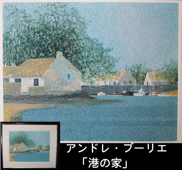 - アンドレ・ブーリエ 「港の家」 リトグラフ 真作 直筆サイン入 限定175部 青い海を描く人気作家 D717
