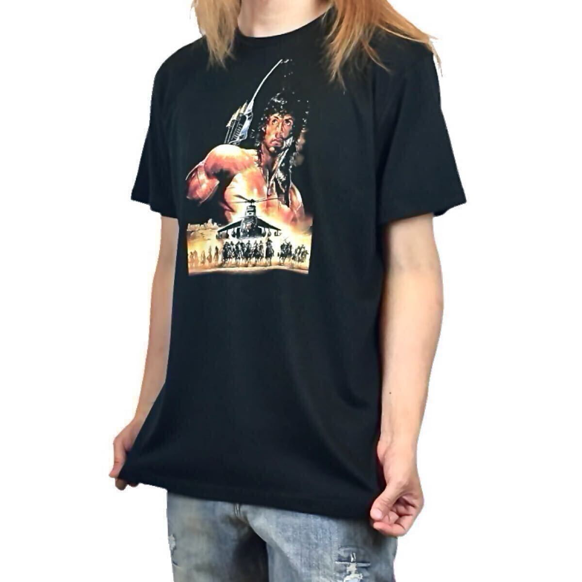 - 新品 ランボー3 怒りのアフガン 弓 アーチェリー ヘリコプター シルヴェスタースタローン映画 ロッキー俳優 Tシャツ ユニセックス Lサイズ