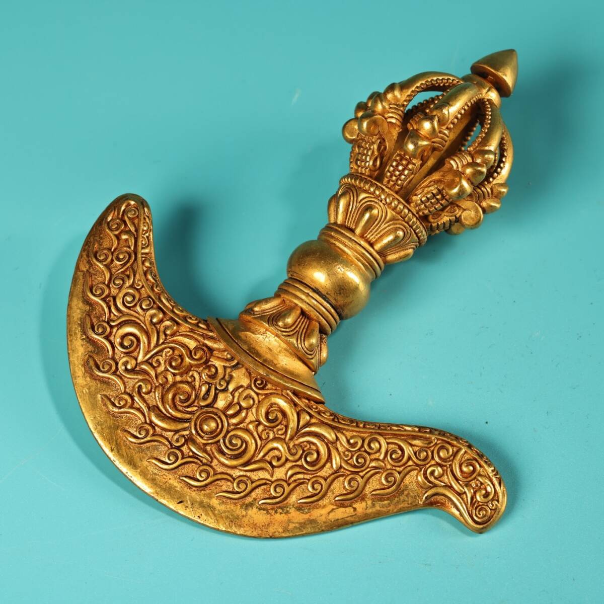 - ▽鴻▽ 銅製 塗金 金剛降魔斧頭 置物 古賞物 中国古玩 中国古美術