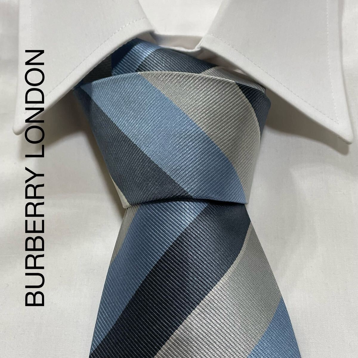 - BURBERRY LONDON バーバリーロンドン ホース ストライプ シルク ネクタイ イタリア製 ライトブルー ブルーグレー グレー TG1229