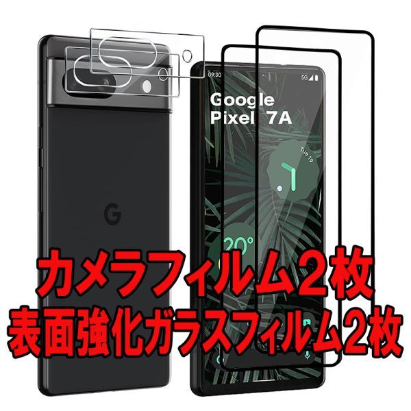 - 2セット=4枚 黒 Google Pixel 7A ガラス フィルム グーグル ピクセル セブン エー カメラフィルム 保護 スクリーン カバー シール シート