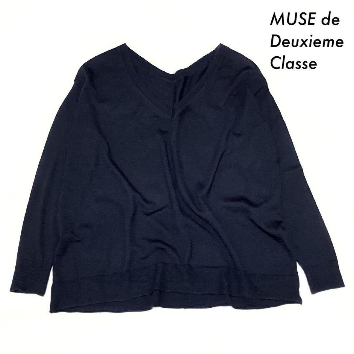 > 【送料無料】MUSE de Deuxieme Classe★Vネック 長袖ニット ネイビー 紺 ドゥーズィエムクラス