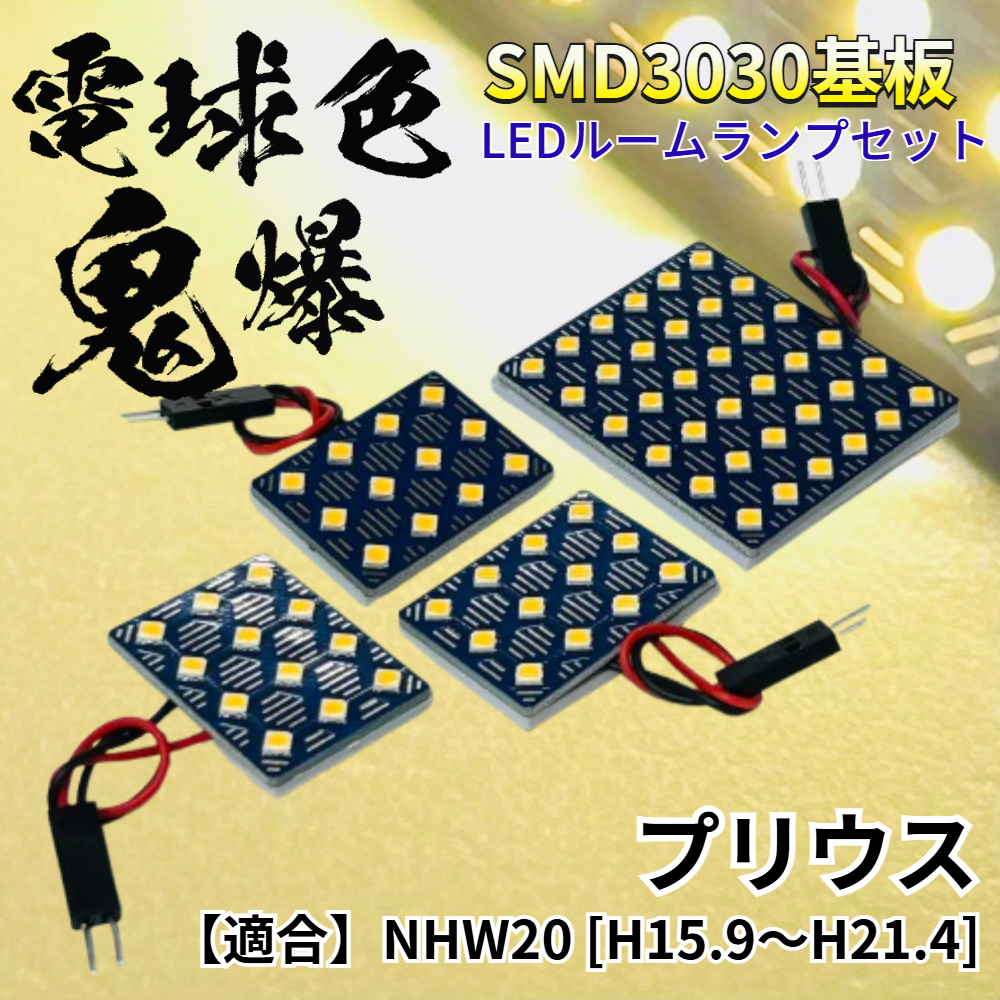 - 【電球色】プリウス NHW20 [H15.9~H21.4] 暖色 鬼爆基板 3030SMD LED ルームランプ セット 車内灯 室内灯 パーツ アクセサリ