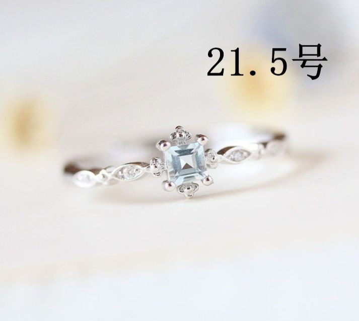 > ブルー スクエア リング 21.5号 ブルートパーズカラー 普段使い アクアマリンカラー シルバー メンズ 21号 22号