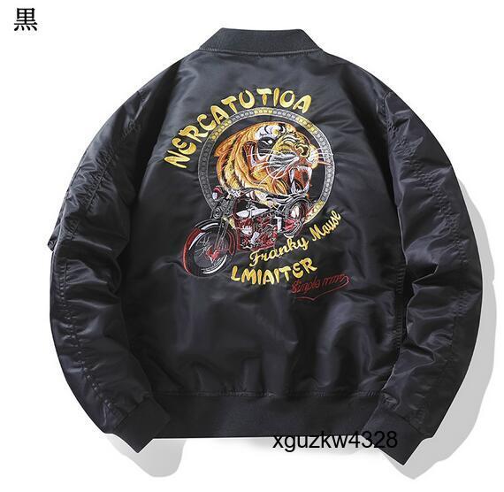 - フライトジャケット虎刺繍 空軍 スタジャン 野球服 ミリタリージャケット メンズ 欧米風アウター ヴィンテージ 黒 3色 M~4XL