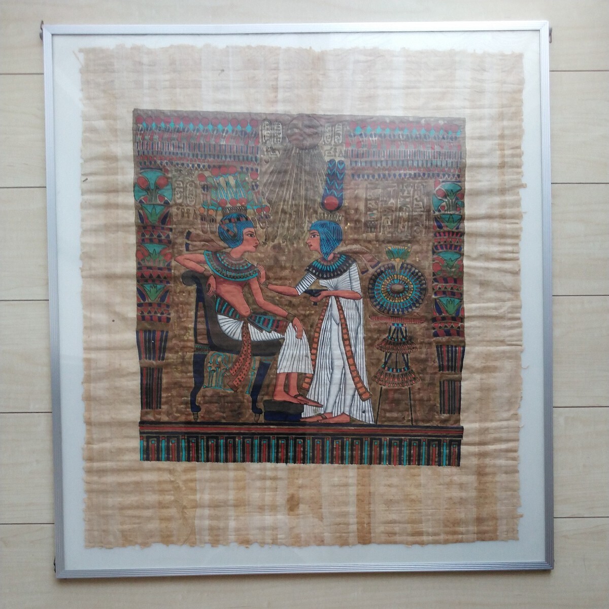 - ■『Tutankhamenの玉座の背凭れを象ったPapyrus』1枚額付。1981年Egypt・Giza台地「Papyrus研究所」で購入。額縁は爾後東急ハンズで購入。