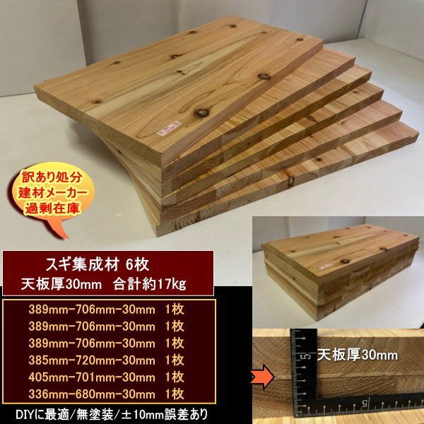 - スギ 杉 集成材 端材6点セット 約17kg 無塗装 軽め スギ集成材30 389-706-30mm 389-706-30mm 他4 送料無料 訳あり処分 DIY